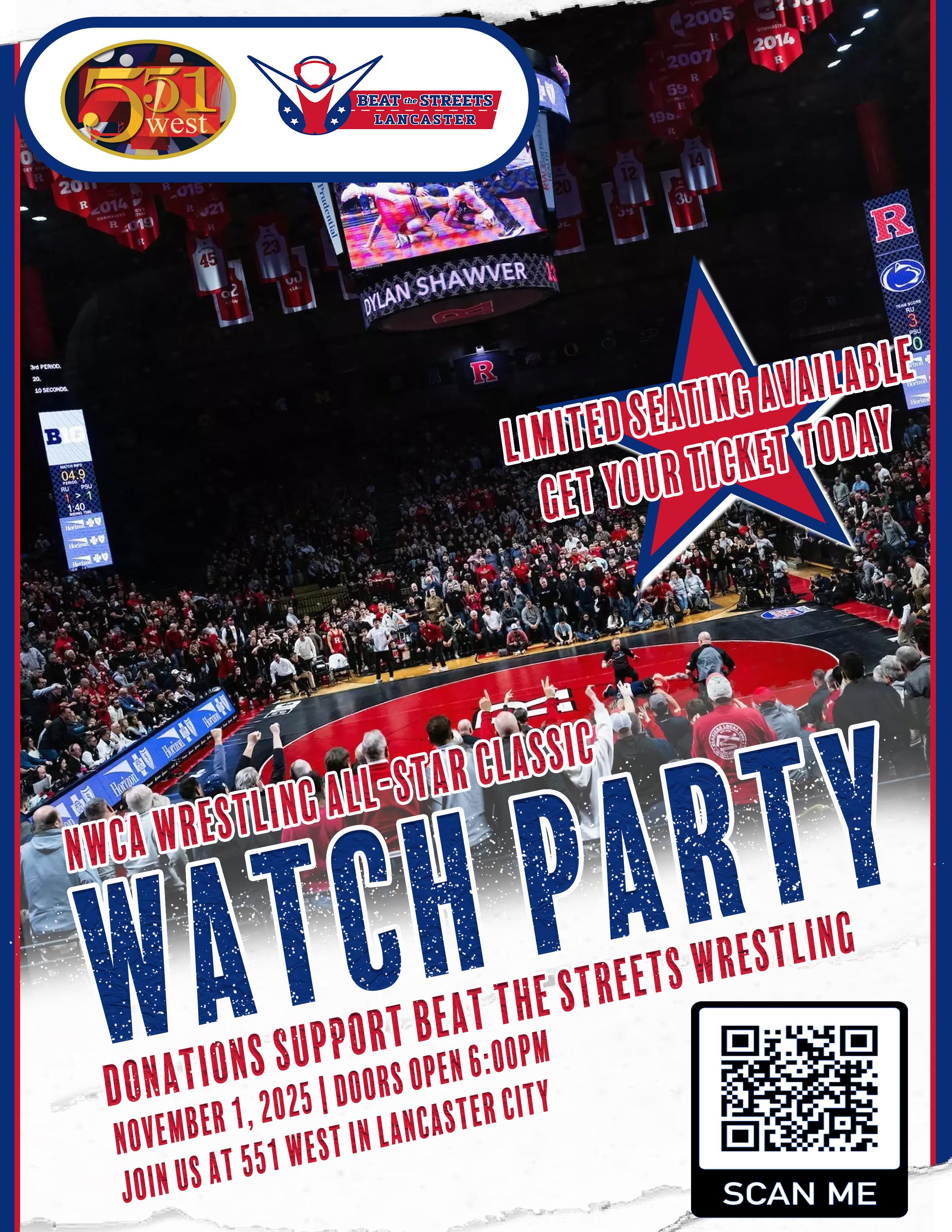 Come by with our friends 551 West for the NWCA All-Star Classic Watch-Party, a showcase highlighting some of the best college wrestlers in the country while supporting our local wrestling programs.
